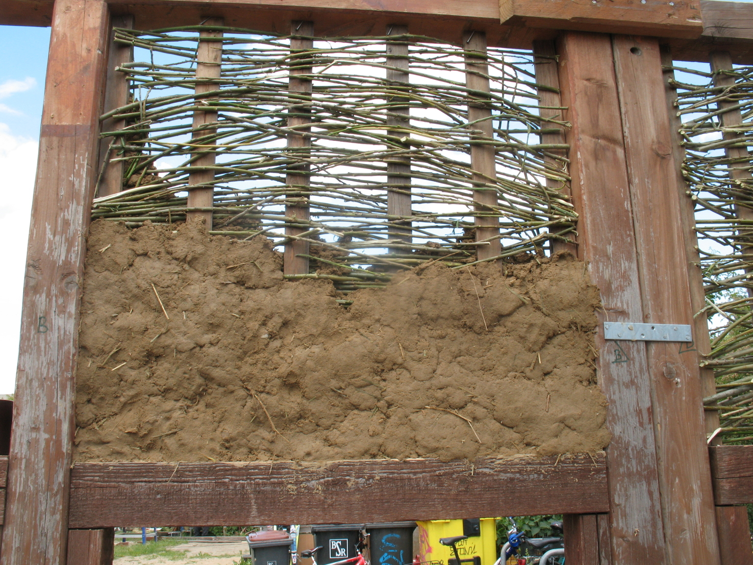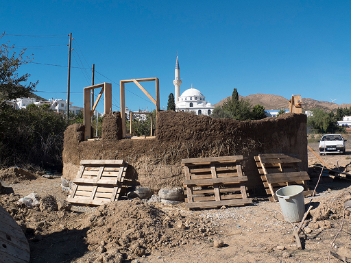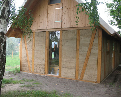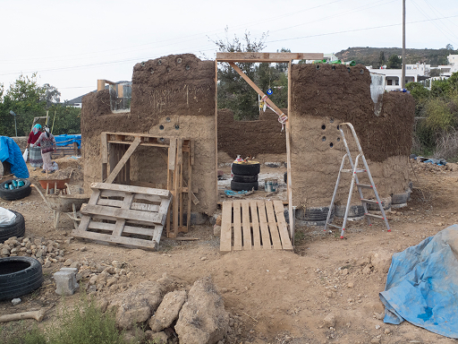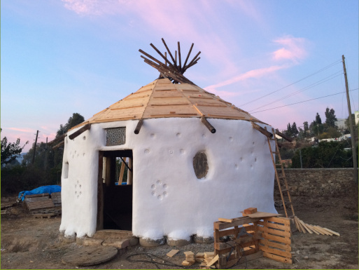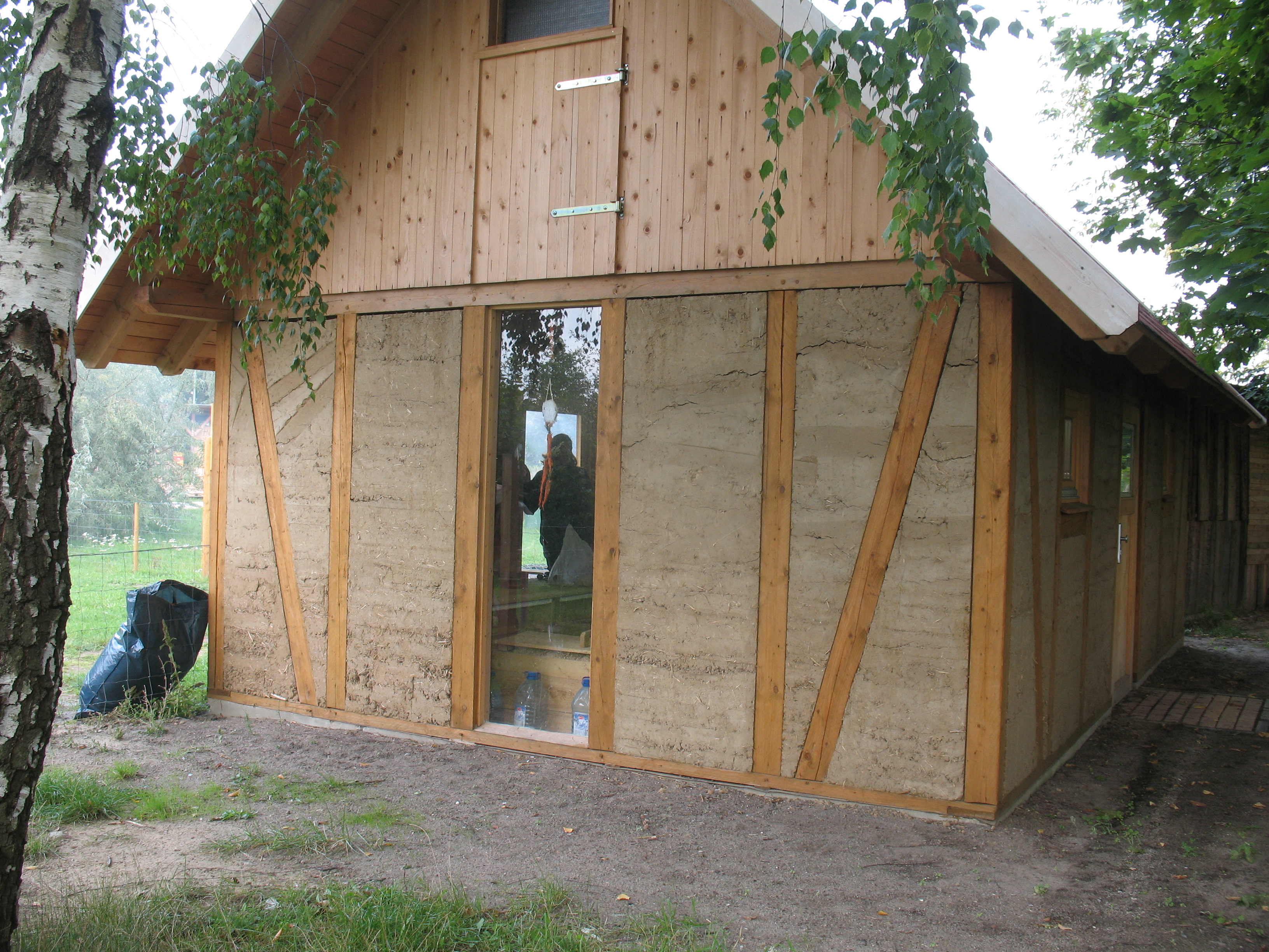 Bau eines kleinen Lehmhauses in Cob- Lehmbauweise,